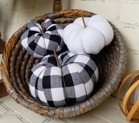 Buffalo Plaid Fall Decor. Buffalo check fabrics and patterns are trendy, especially for fall. Just remember, you don't need to spell the word fall.