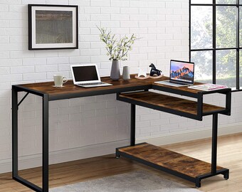 L Shaped Craft Desk. Construction is made of wood and mounted on metal legs. Then i put the desk on the floor on top of the sheets and used little shims of wood to ensure it was perfectly level because my floor is not.